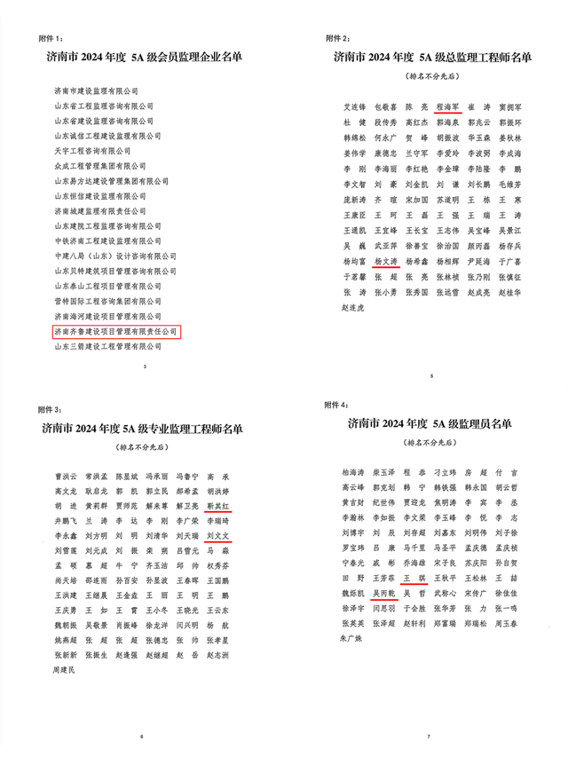 近日,濟(jì)南市建設(shè)監(jiān)理和咨詢協(xié)會(huì)發(fā)布《關(guān)于公布 2024 年度監(jiān)理企業(yè)和從業(yè)人員 5A 級(jí)考核評(píng)價(jià)名單的通知》,我司憑借專業(yè)的技術(shù)實(shí)力、規(guī)范的管理水平與卓越的服務(wù)品質(zhì),成功獲評(píng)“濟(jì)南市 2024 年度 5A 級(jí)會(huì)員監(jiān)理企業(yè)”;同時(shí),公司多名員工在個(gè)人評(píng)選中脫穎而出,榮獲“5A 級(jí)監(jiān)理從業(yè)人員”榮譽(yù)!
